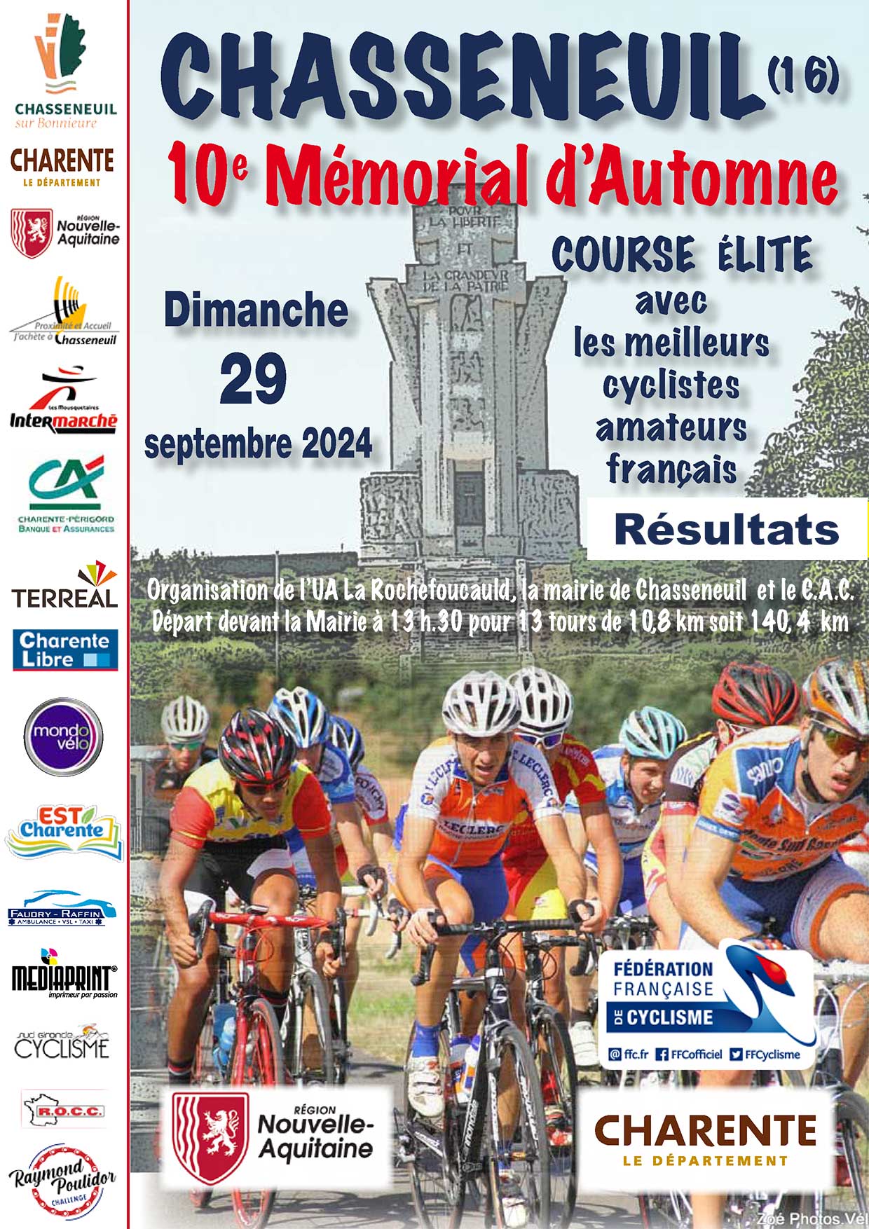 Accueil › Résultats › Résultats - Route Résultats - Route 2024 - 10ème Mémorial d’Automne - La Rochefoucauld Publié le mardi 24 septembre 2024 Mis à jour le dimanche 29 septembre 2024 par Frédéric Lafargue Liste de départ Résultats Complets Accueil Retour à la rubrique