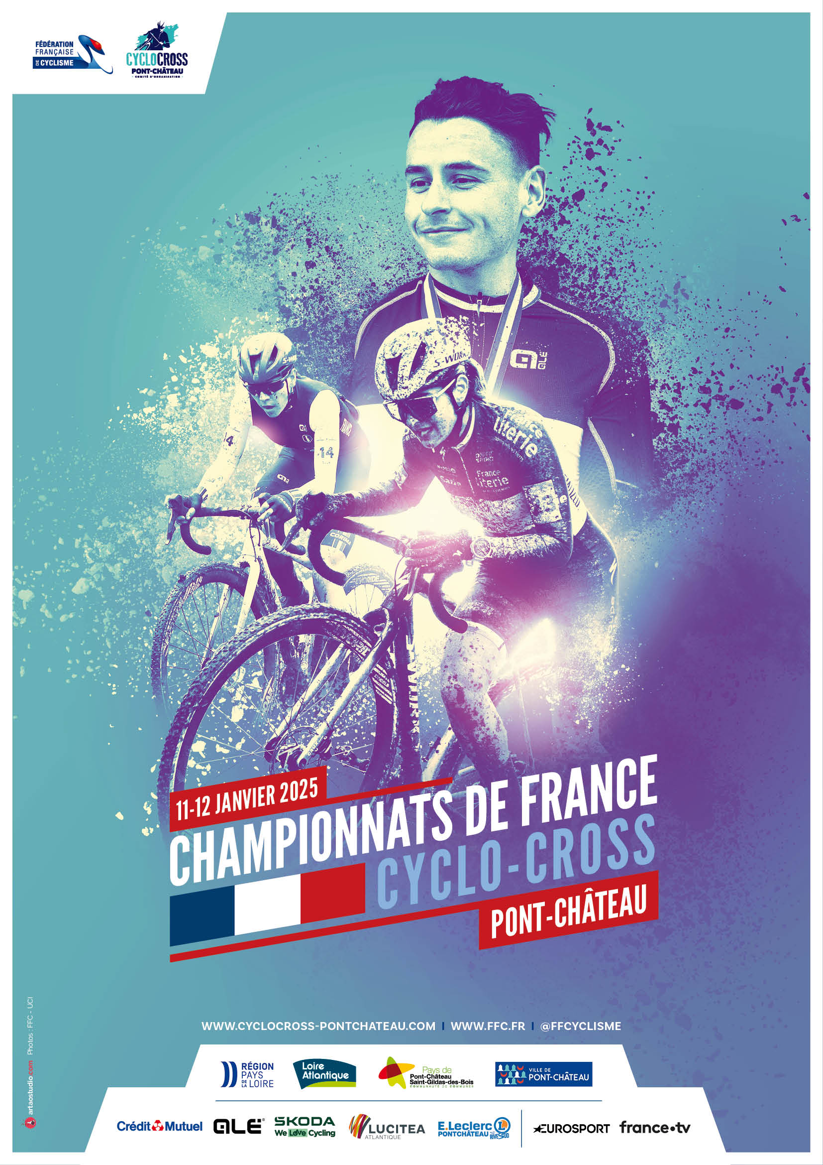 Accueil › Résultats › Résultats - Cyclo-Cross Résultats - Cyclo-Cross 2025 - Championnats de France de Cyclo Cross - Pont-Château - Pays de la Loire Publié le lundi 30 décembre 2024 Mis à jour le dimanche 12 janvier 2025 par Frédéric Lafargue Liste des engagé·es Grille de départ provisoire Arrivée : Résultats Samedi - U17H&F - U23H Résultats Dimanche - ME - WE - WU19 - MU19 Relai : Relai des Comités - Résultats Accueil Retour à la rubrique