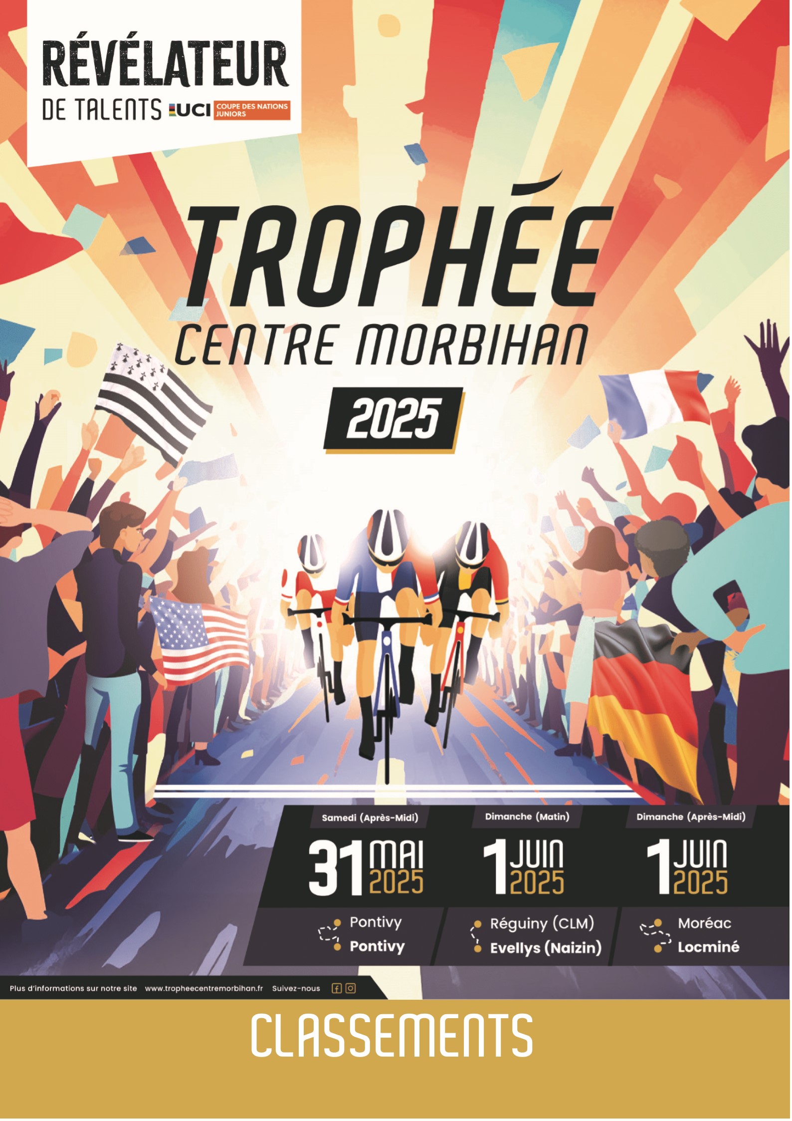 Accueil › Résultats › Résultats - Route Résultats - Route 2025 - Trophée Centre Morbihan - Coupe des Nations Juniors Hommes Publié le mercredi 14 mai 2025 Mis à jour le dimanche 1er juin 2025 par Frédéric Lafargue Liste des Partants 1ère étape Pontivy - Pontivy 2ème étape Réguiny - Evellys (Naizin) 3ème étape Moréac - Locminé Accueil Retour à la rubrique