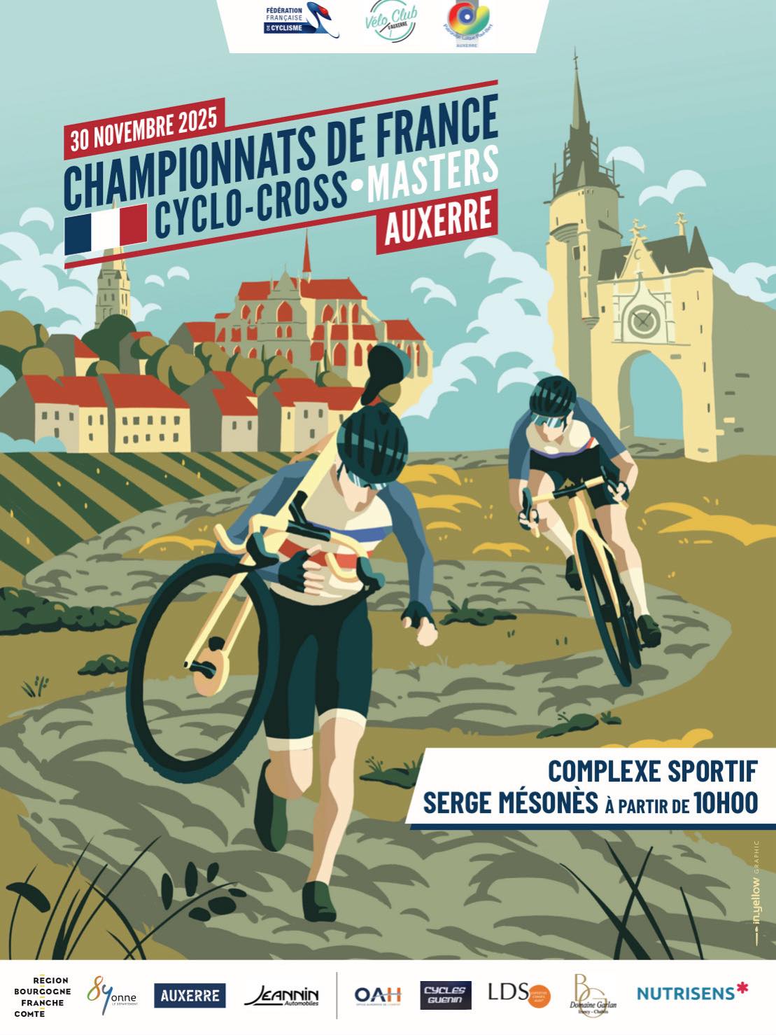 Accueil › Résultats › Résultats - Cyclo-Cross Résultats - Cyclo-Cross 2025 - Championnat France Masters de Cyclo Cross - Auxerre (Yonne-Bourgogne-Franche-Comté) Publié le vendredi 10 octobre 2025 Mis à jour le dimanche 30 novembre 2025 par Frédéric Lafargue Liste des engagé·es Grille de départ PROVISOIRE Résultats Complets Accueil Retour à la rubrique