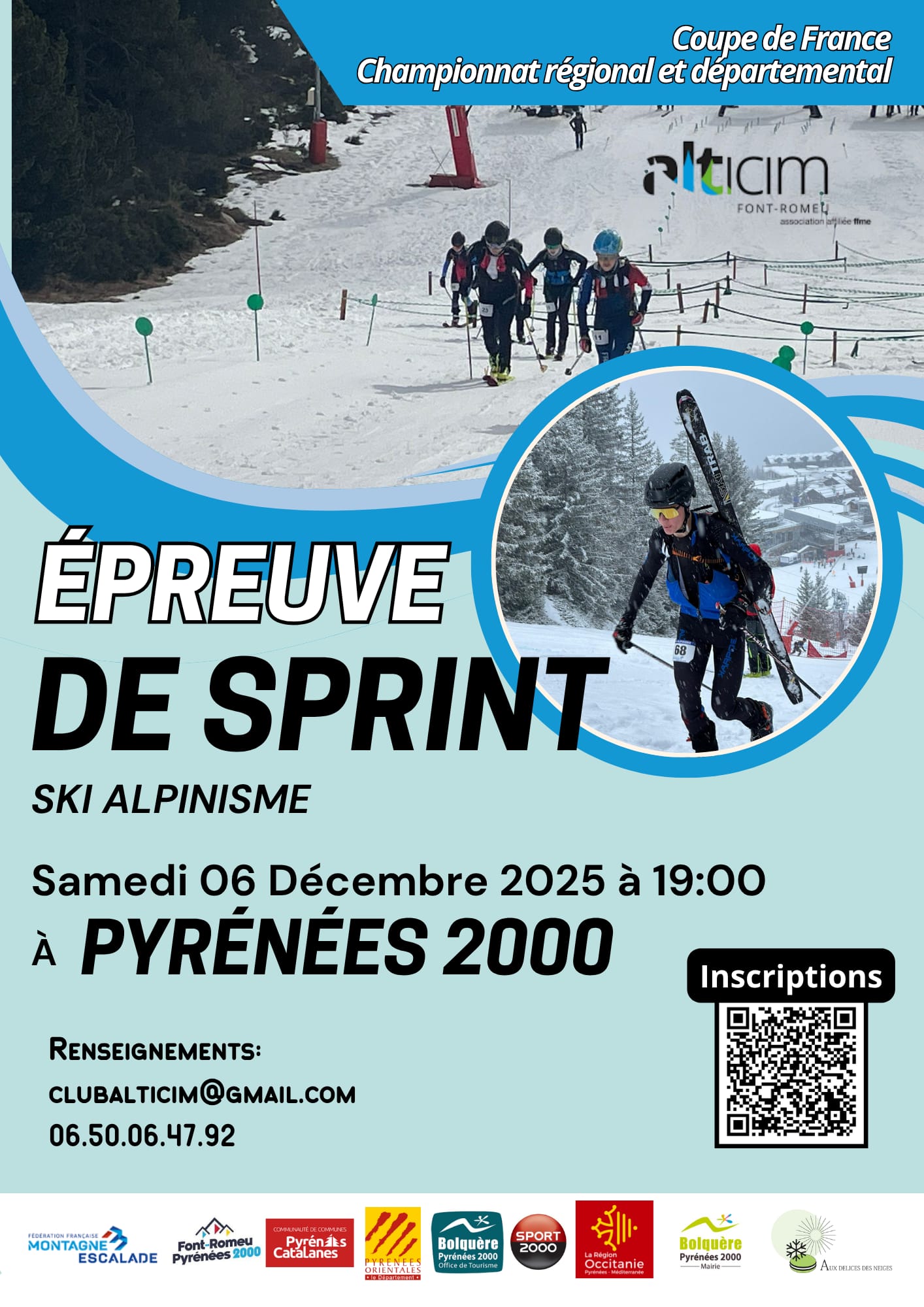 Accueil › Résultats › Résultats - Sport de Glisse Résultats - Sport de Glisse 2025 - Epreuve de Sprint - Ski Alpinisme - Pyrénées 2000 - Coupe de France - Championnat Régional & Départemental Publié le jeudi 4 décembre 2025 Mis à jour le samedi 6 décembre 2025 par Frédéric Lafargue Liste des engagé·es Tableaux Finaux Accueil Retour à la rubrique
