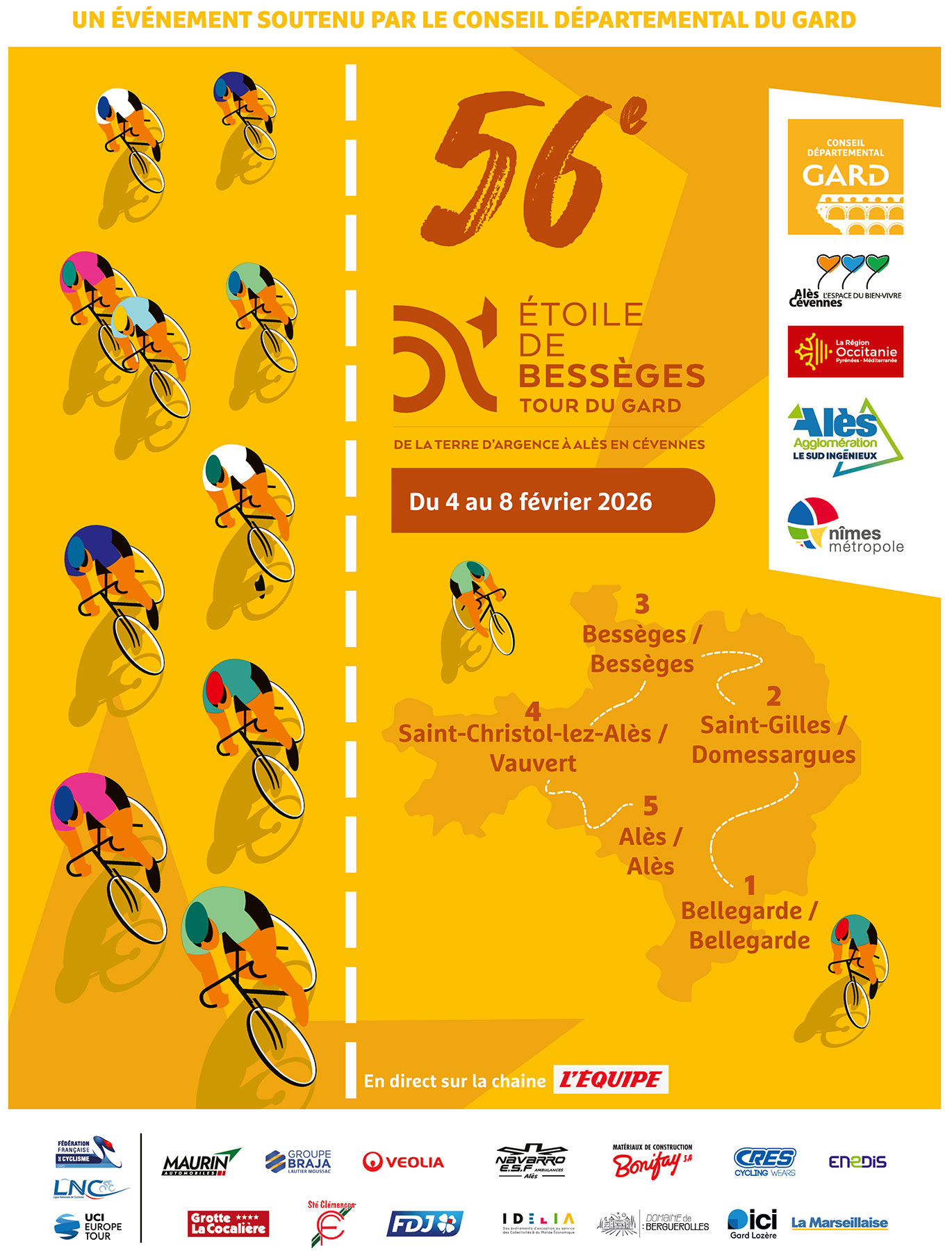 Accueil › Live à venir › Live à venir Live à venir 2026 - Étoile de Bessèges - Tour du Gard Publié le vendredi 30 janvier 2026 Mis à jour le vendredi 30 janvier 2026 par Frédéric Lafargue Accueil Retour à la rubrique