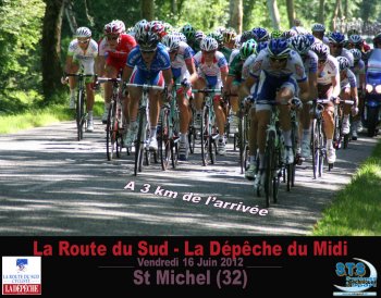 Accueil › Résultats › Résultats - Route Résultats - Route 2012 - La Route du Sud - La Dépêche du Midi Publié le mercredi 13 juin 2012 Mis à jour le dimanche 17 juin 2012 par Frédéric Lafargue Liste Des Partants 1ère étape Lacaune - Albi Stéphane Poulhies Devant Arnaud Demare 2ème étape Castres - St Michel Arnaud Démare règle le sprint de la 2ème étape 3ème étape Trie sur Baïse - Arras en Lavedan Blel kadri au 1er Passage La poursuite au 1er Passage 4ème étape St Gaudens - St Gaudens Accueil Retour à la rubrique