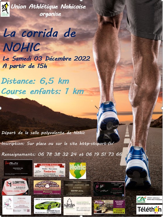 Accueil › Résultats › Résultats - Course à Pied Résultats - Course à Pied 2022 - Corrida de Nohic Publié le dimanche 6 novembre 2022 Mis à jour le samedi 3 décembre 2022 par Frédéric Lafargue Accueil Retour à la rubrique