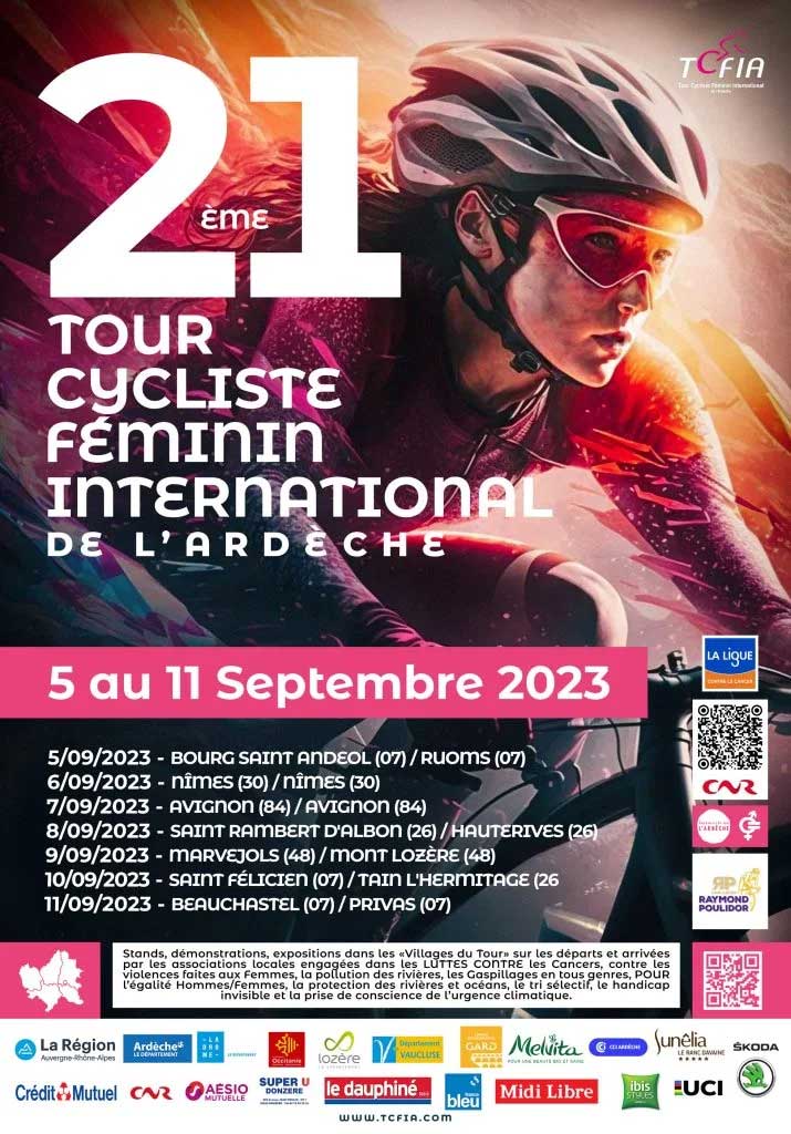 Accueil › Résultats › Résultats - Route Résultats - Route 2023 - 21ème Tour Cycliste Féminin International de l’Ardèche Publié le lundi 28 août 2023 Mis à jour le lundi 11 septembre 2023 par Frédéric Lafargue Liste des engagés Liste des Partantes 1ère étape Bourg-Saint-Andéol - Ruoms 2ème étape Nimes - Nimes 3ème étape Avignon - Avignon 4ème étape Saint-Rambert-d’Albon - Hauterives 5ème étape Marvejols - Mont Lozère 6ème étape Saint-Félicien - Tain-l’Hermitage 7ème étape Beauchastel - Privas Accueil Retour à la rubrique