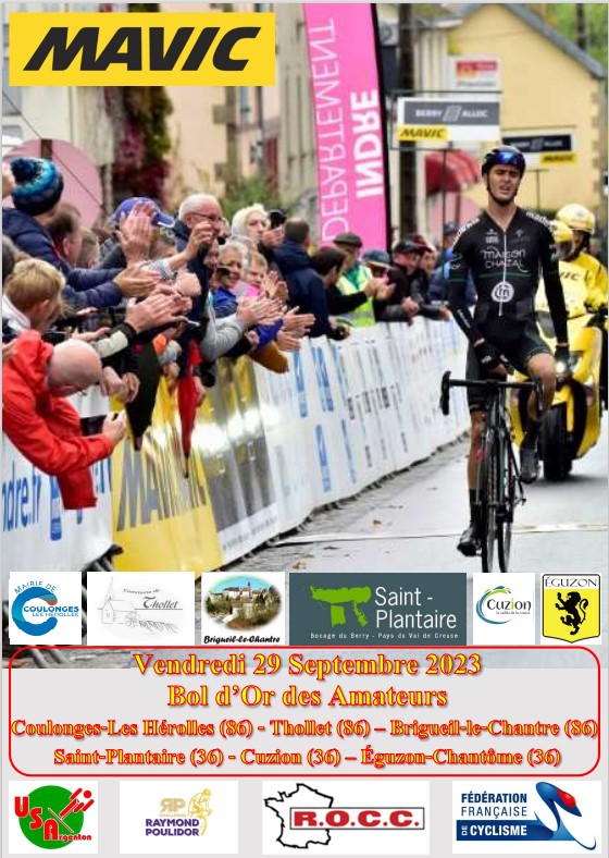 Accueil › Résultats › Résultats - Route Résultats - Route 2023 - Bol d’Or - Trophée des Champions - Challenge Mavic Publié le dimanche 24 septembre 2023 Mis à jour le samedi 30 septembre 2023 par Frédéric Lafargue BO-Liste des Engagés Liste de départ Résultats Bol d’Or TC-Liste des Engagés Liste des Partants - Trophée des Champions Trophée des Champions - Résultats Live transpondeurs de la Course d’Attente Accueil Retour à la rubrique
