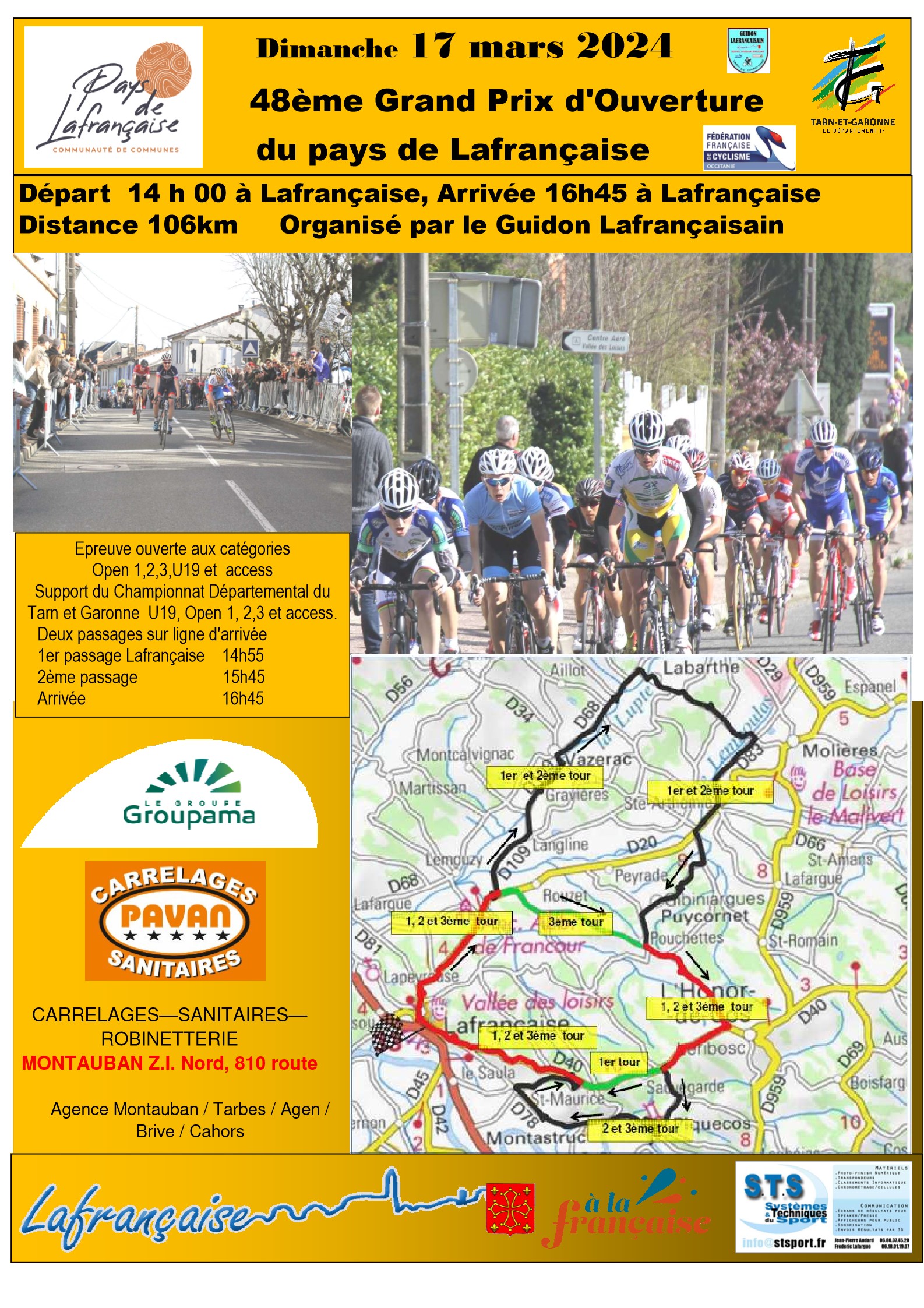 Accueil › Résultats › Résultats - Route Résultats - Route 2024 - 48ème Grand Prix des Coteaux et Plaines du Pays Lafrançaisain Publié le jeudi 7 mars 2024 Mis à jour le vendredi 22 mars 2024 par Frédéric Lafargue Résultats Complets Accueil Retour à la rubrique