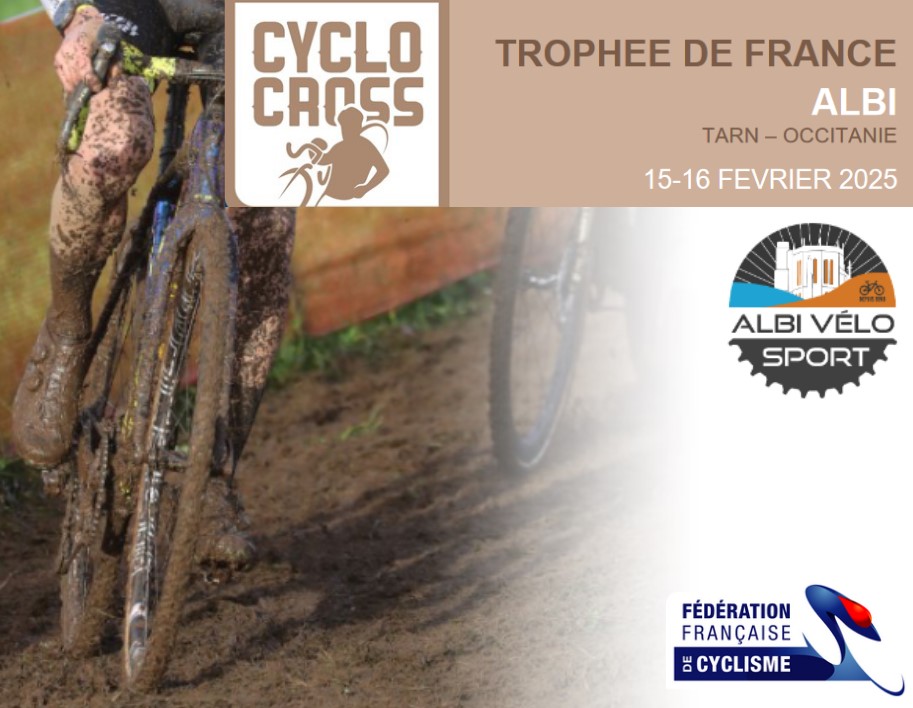 Accueil › Résultats › Résultats - Cyclo-Cross Résultats - Cyclo-Cross 2025 - Trophée de France de Cyclo Cross - Albi - Tarn - Occitanie Publié le mardi 4 février 2025 Mis à jour le dimanche 16 février 2025 par Frédéric Lafargue Liste des engagés Général Final des Comités Cyclo-Cross Eliminator (CXE) Timing prévisionnel de la journée de Samedi (XCE) Série Qualificative - Liste des coureurs par série _______QUALIFICATIONS_______ Résultats séries de qualifs _______DEMI-FINALE_______ Appel demi finale Résultats demi Finales _______FINALE_______ Appel finale Résultats Finaux Epreuve de Cyclo-Cross Grille de départ du XC Resultats Cyclo-Cross Général Final Individuel Accueil Retour à la rubrique