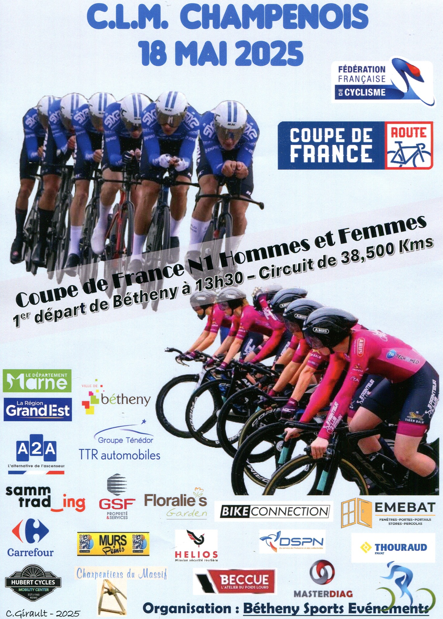 Accueil › Résultats › Résultats - Route Résultats - Route 2025 - Coupe de France des Clubs - Manche 3 - MN1 & WN1 - Contre la Montre Champenois Publié le mercredi 7 mai 2025 Mis à jour le dimanche 18 mai 2025 par Frédéric Lafargue Coupe de France N1 Hommes N1 Hommes - Liste des engagés Horaires de Départs N1 Hommes Partants N1 Résultats N1 Hommes Coupe de France N1 Femmes N1 Femmes - Liste des engagés Partantes N1 Horaires de Départs N1 Femmes Résultats N1 Femmes Accueil Retour à la rubrique