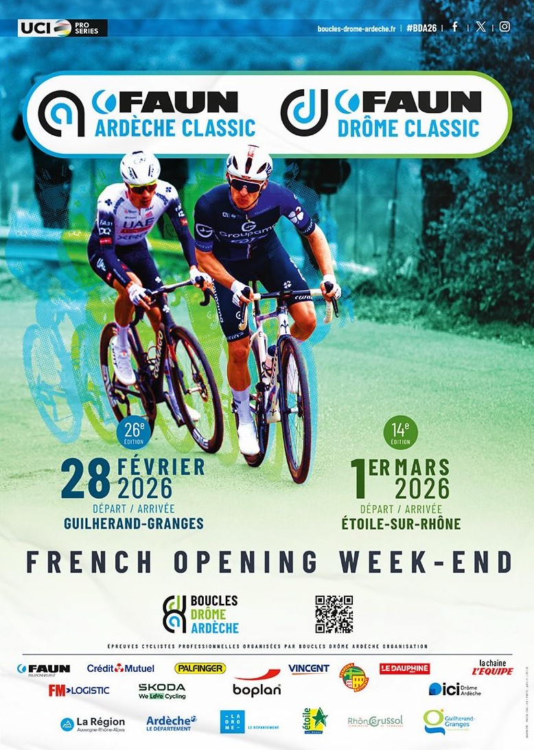 Accueil › Live à venir › Live à venir Live à venir 2026 - Boucles Drôme Ardèche Publié le mardi 10 février 2026 Mis à jour le mardi 10 février 2026 par Frédéric Lafargue Faun-Ardèche Classic Résultats Faun Ardèche Classic Faun Drôme Classic Accueil Retour à la rubrique