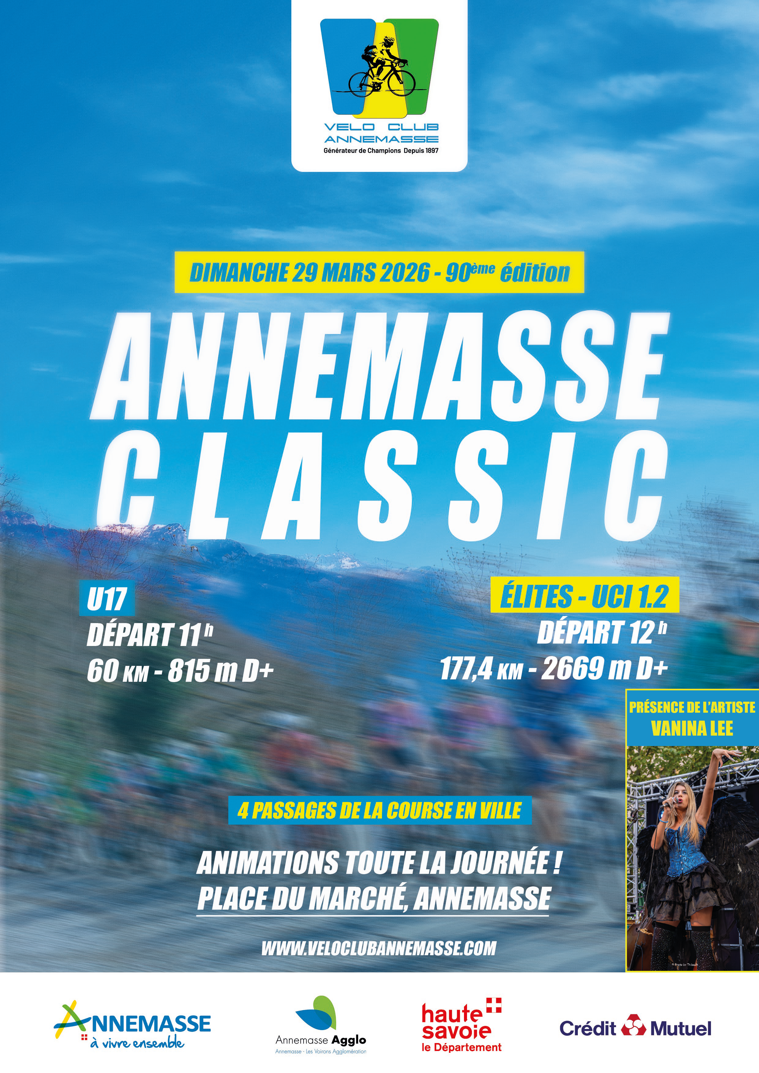 Accueil › Live à venir › Live à venir Live à venir 2026 - Annemasse Classic, 90ème édition Publié le vendredi 27 mars 2026 Mis à jour le vendredi 27 mars 2026 par Frédéric Lafargue Spéciale U17 Accueil Retour à la rubrique