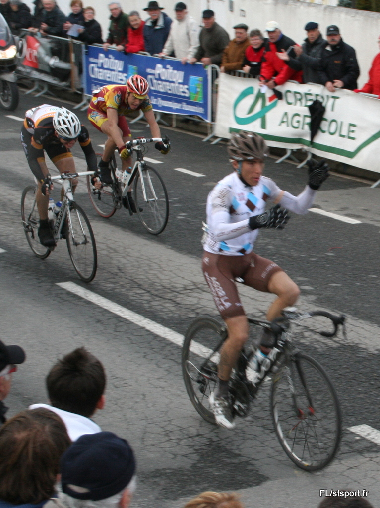 Domont\’niaque Un climat terrible a accueilli le peloton ce jour ci à Buxerolles. Après une demi-heure de combat contre le vent lors du passage sur la plaine opposé à l\’arrivée, les concurrents du jour ont eu la joie d\’ajouter à leur labeur le froid cognant des grêlons sur leur cuisse. La lutte fut inégale pour la grande partie du peloton contre les longues averses qui suivirent et la température retrouvé du mois de février. Le peloton s\’est décimé à chaque coup de bordures. On perdit jusqu\’à 20 coureurs par tour. à 6 tours de l\’arrivée, il ne restait plus qu\’une cinquantaine d\’unité à sortir de l\’ombre humide et froide de ce nuage si grand. Et seulement 33 gueules noires, au bout de l\’effort ont réussi à franchir la ligne. Presque tous dans les points ... et ils le méritaient.