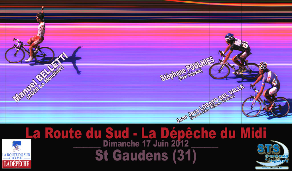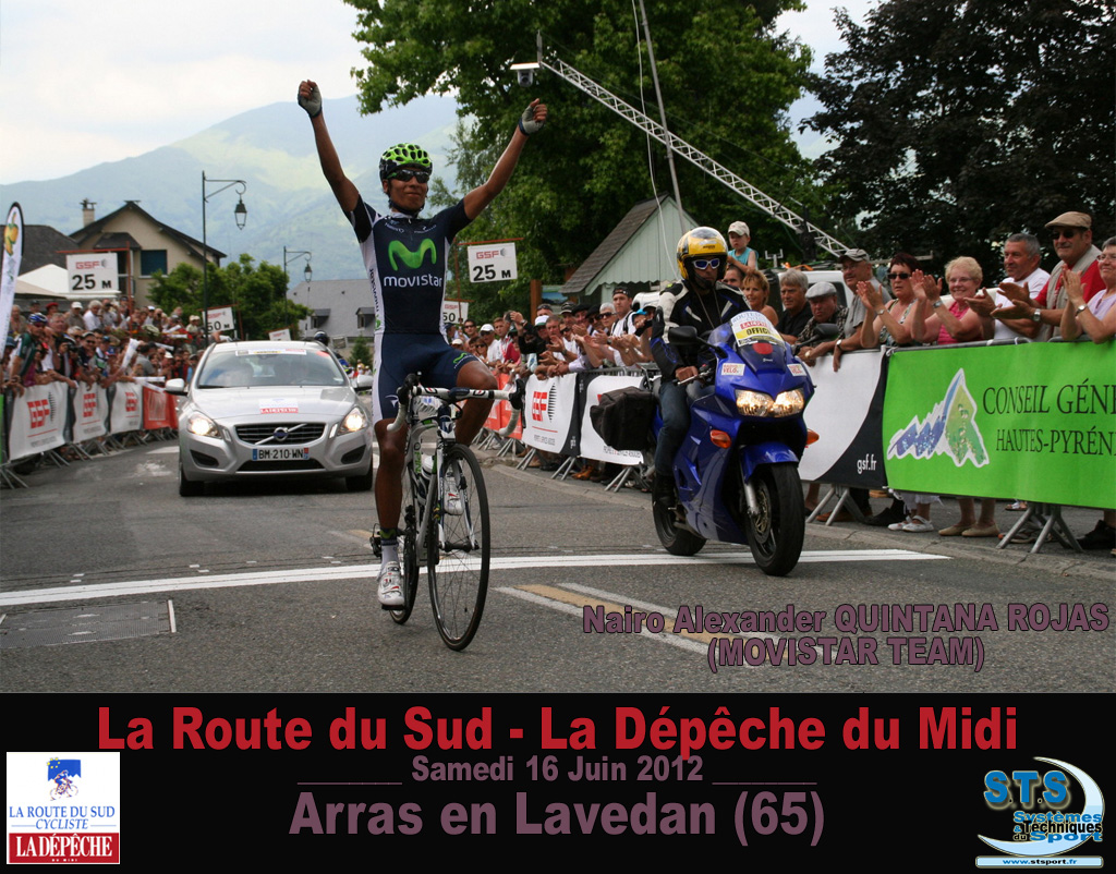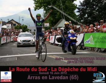 Accueil › Résultats › Résultats - Route Résultats - Route 2012 - La Route du Sud - La Dépêche du Midi Publié le mercredi 13 juin 2012 Mis à jour le dimanche 17 juin 2012 par Frédéric Lafargue Liste Des Partants 1ère étape Lacaune - Albi Stéphane Poulhies Devant Arnaud Demare 2ème étape Castres - St Michel Arnaud Démare règle le sprint de la 2ème étape 3ème étape Trie sur Baïse - Arras en Lavedan Blel kadri au 1er Passage La poursuite au 1er Passage 4ème étape St Gaudens - St Gaudens Accueil Retour à la rubrique
