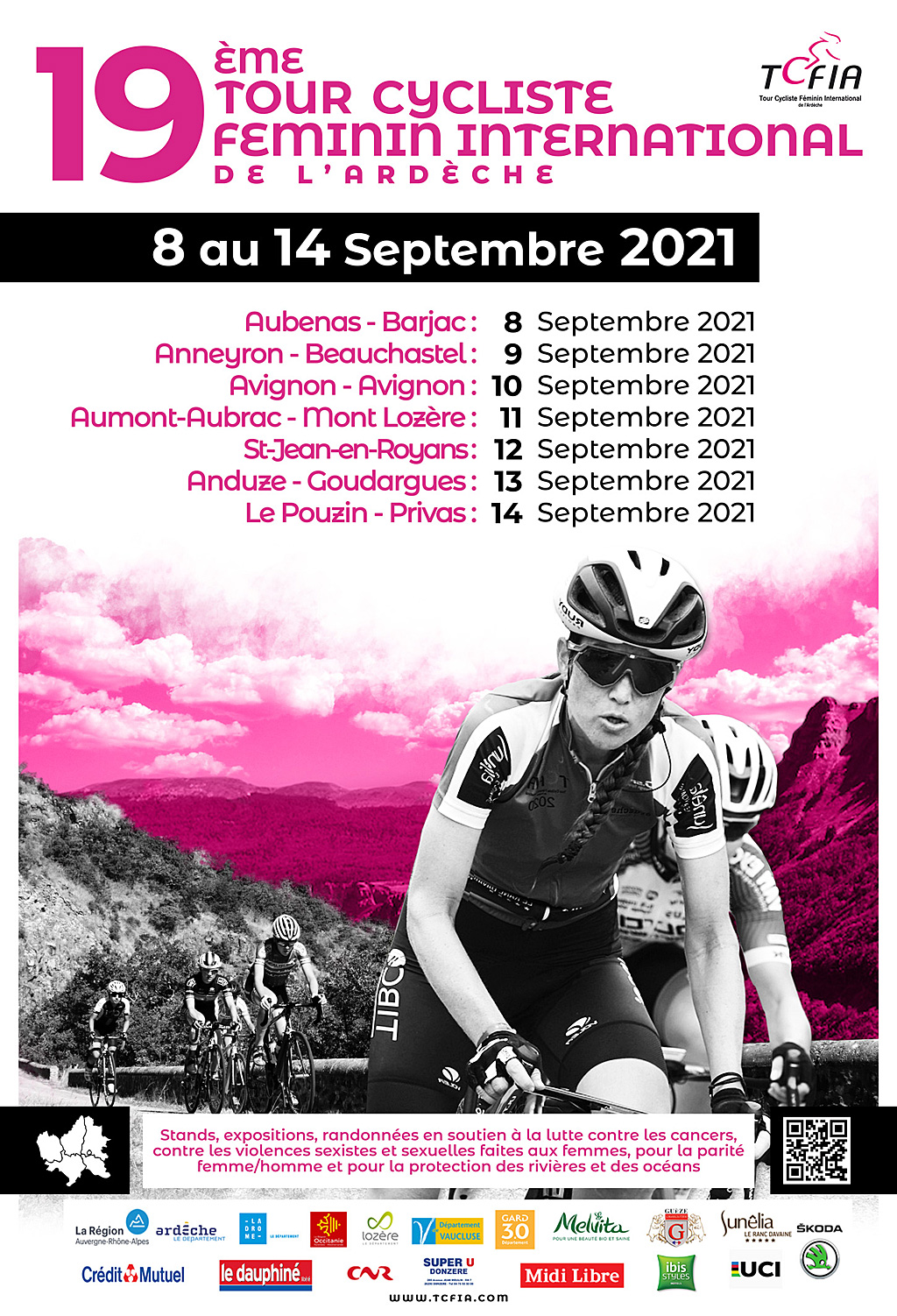 Accueil › Résultats › Résultats - Route Résultats - Route 2021 - 19ème Tour Cycliste Féminin International de l’Ardèche Publié le mardi 7 septembre 2021 Mis à jour le mardi 14 septembre 2021 par Frédéric Lafargue Liste des Partants 1ère étapeAubenas - Barjac 2ème étape Anneyron - Beauchastel 3ème étape Avignon - Avignon 4ème étape Aumont-Aubrac - Mont Lozère 5ème étape St-Jean-en-Royans - St-Jean-en-Royans 6ème étape Anduze - Goudargues 7ème étape Le Pouzin - Privas Accueil Retour à la rubrique