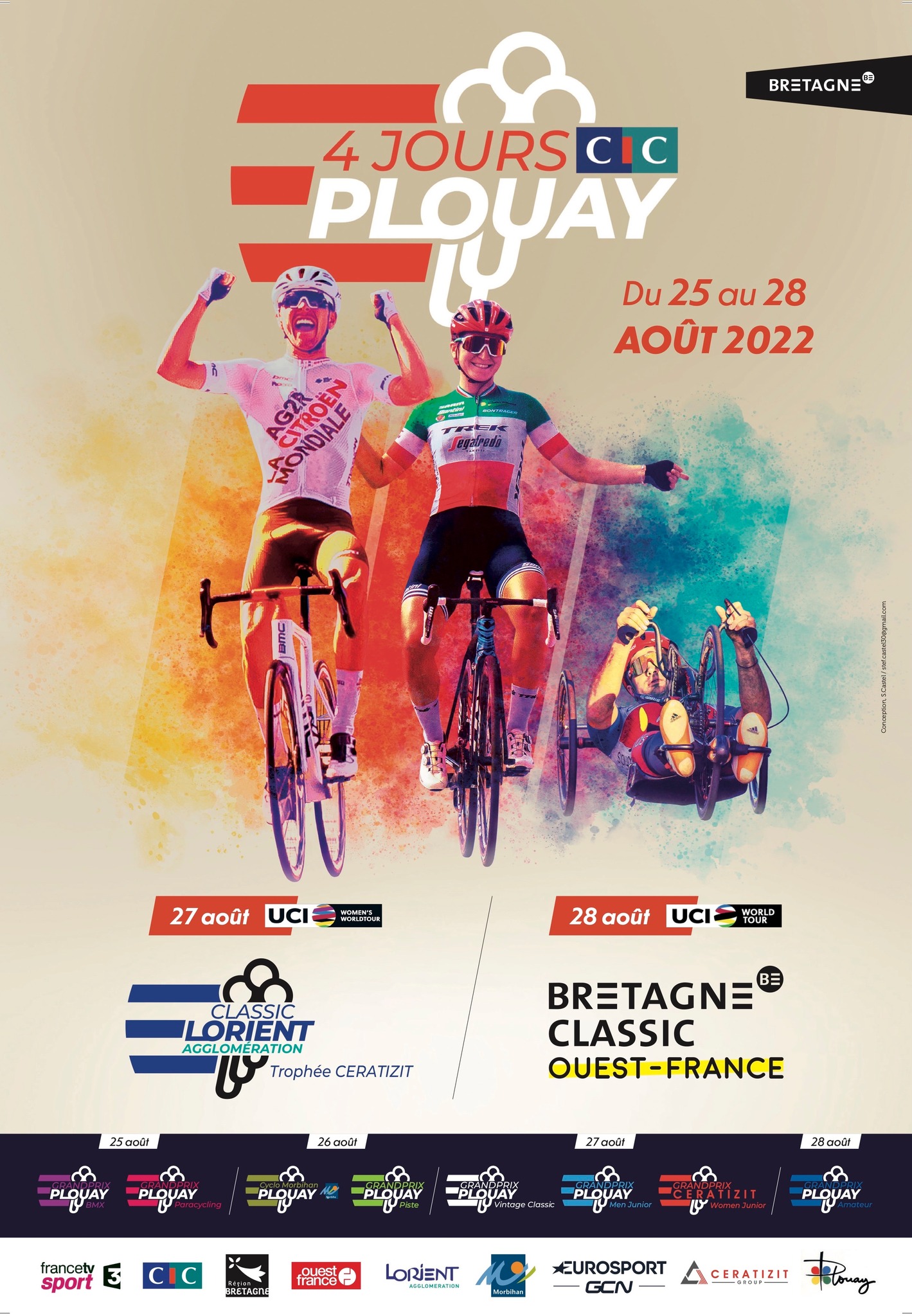 Accueil › Résultats › Résultats - Route Résultats - Route 2022 - LES 4 JOURS CIC DE PLOUAY 2022 Publié le lundi 15 août 2022 Mis à jour le vendredi 5 décembre 2025 par Frédéric Lafargue Bretagne Classic - Ouest France Bretagne Classic - Liste des Engagés Liste des Partants Bretagne Classic Bretagne Classic - Ouest France - Résultats Classic Lorient Agglomération - Trophée Ceratizit Classic Lorient Agglo - Liste des Engagés Liste des Partantes Résutats Complets Grand Prix de Plouay Amateur Grand Prix de Plouay Amateur - Liste des Engagés Résultats Amateurs GP Plouay Men Junior Grand Prix de Plouay Men Juniors - Liste des Engagés Résultats Juniors Hommes GP Plouay Women Junior Liste des Partantes Résutats Complets La Cyclo Morbihan Plouay Résultats la Cyclo Morbihan Accueil Retour à la rubrique