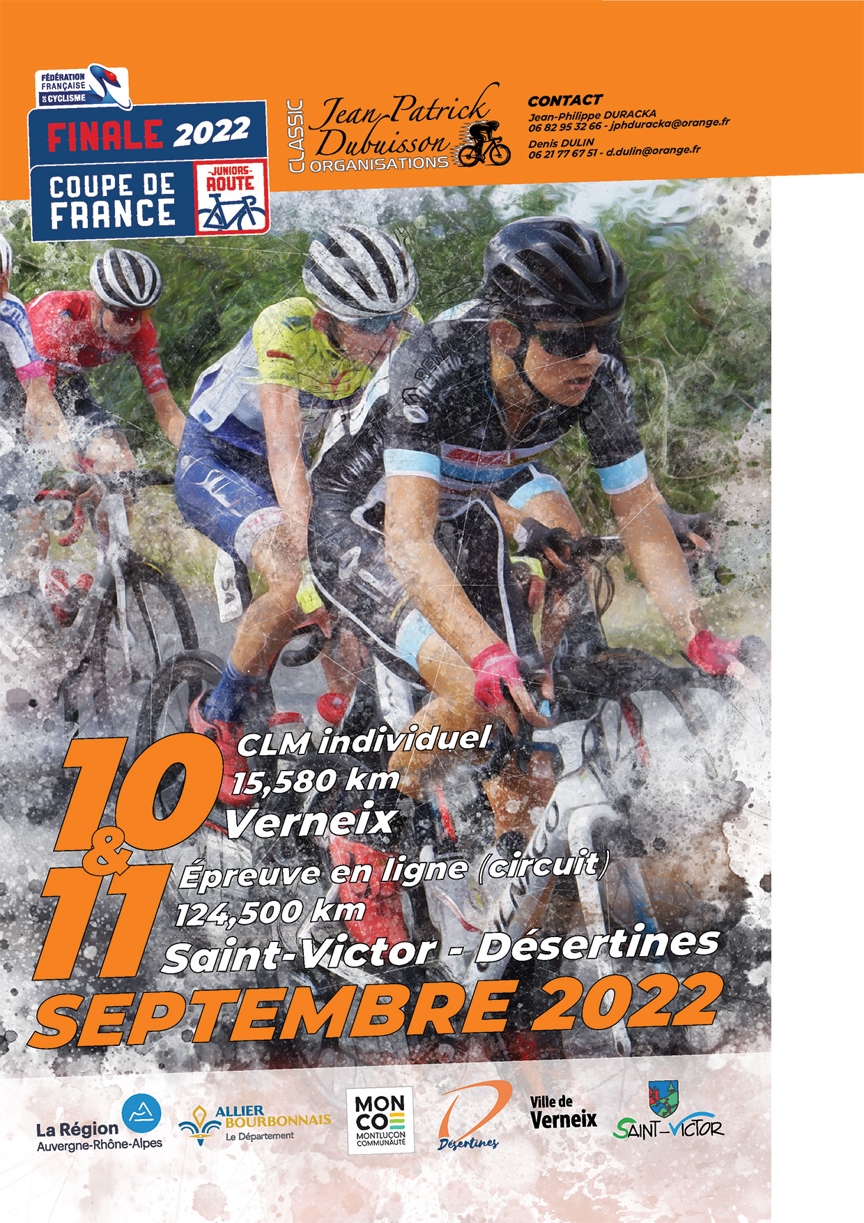 Accueil › Résultats › Résultats - Route Résultats - Route 2022 - Coupe de France Juniors - M5 - Finale - Classic Jean Patrick Dubuisson Publié le samedi 3 septembre 2022 Mis à jour le jeudi 13 avril 2023 par Frédéric Lafargue Liste des partants Horaire de départ du CLM 1ère étape CLM Individuel à Verneix Point Inter 2ème étape Saint Victor - Désertines Accueil Retour à la rubrique