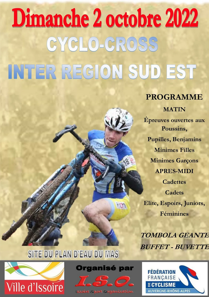 Accueil › Résultats › Résultats - Cyclo-Cross Résultats - Cyclo-Cross 2022 - Cyclo Cross d’Issoire - Inter région SUD EST Publié le samedi 1er octobre 2022 Mis à jour le jeudi 13 avril 2023 par Frédéric Lafargue Accueil Retour à la rubrique