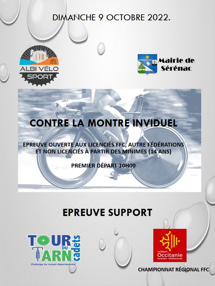 Accueil › Résultats › Résultats - Route Résultats - Route 2022 - Championnat Occitanie de Contre la Montre -Sérénac 2022 Publié le samedi 8 octobre 2022 Mis à jour le jeudi 13 avril 2023 par Frédéric Lafargue Champ Occi FFc CLM Matin Accueil Retour à la rubrique