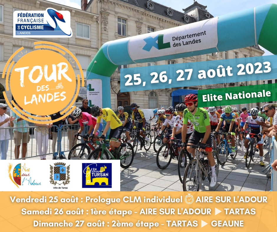 Accueil › Résultats › Résultats - Route Résultats - Route 2023 - 35ème Le Tour des Landes Publié le mercredi 23 août 2023 Mis à jour le dimanche 27 août 2023 par Frédéric Lafargue Liste des partants horaires de départ Prologue à Mont de Marsan 1ère étape Aire-sur-l’Adour - Tartas 2ème étape Tartas - Geaune Accueil Retour à la rubrique