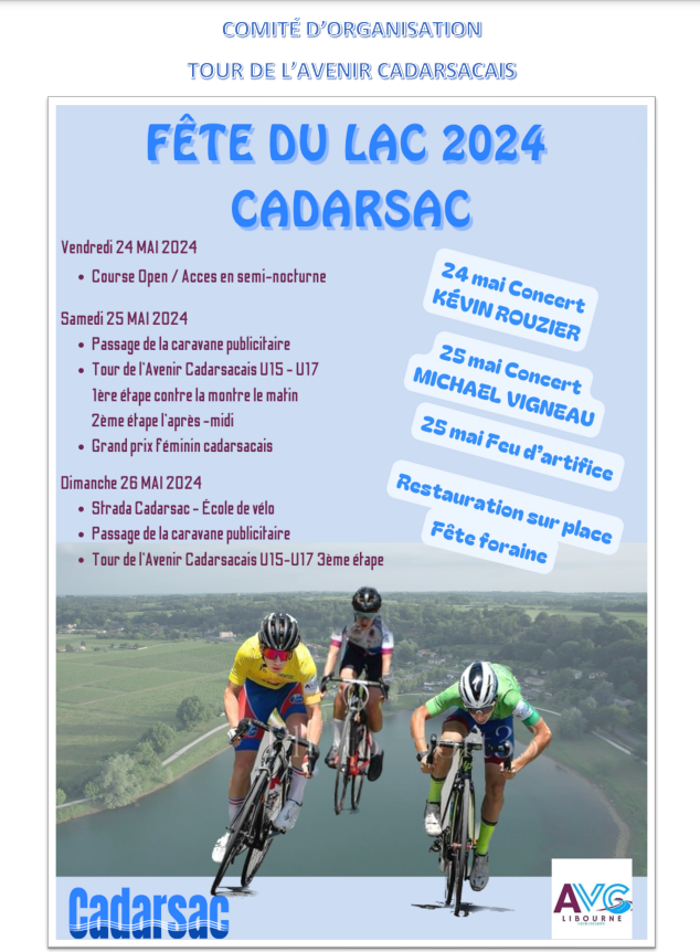 Accueil › Résultats › Résultats - Route Résultats - Route 2024 - Fête du Lac Cadarsac - 2ème Tour de l’Avenir Cadarsacais Publié le vendredi 17 mai 2024 Mis à jour le dimanche 26 mai 2024 par Frédéric Lafargue Etape 1 - Résultats Etape 2 - Résultats Etape 3 - Résultats Epreuve Open - Access Résultats Open-Access Epreuve Féminine Accueil Retour à la rubrique