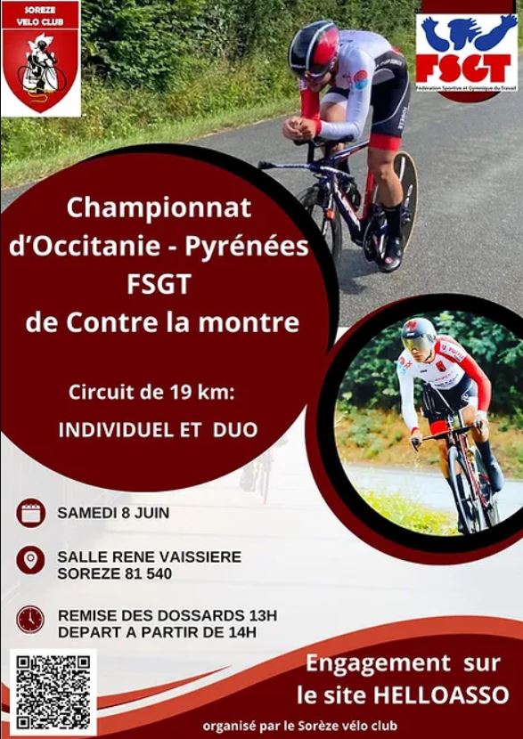Accueil › Résultats › Résultats - Route Résultats - Route 2024 - Championnat d’Occitanie - Pyrénées FSGT de Contre la Montre Publié le lundi 27 mai 2024 Mis à jour le samedi 8 juin 2024 par Frédéric Lafargue Liste & Horaire de départ Solo - Catégorie Solo - Scratch Duo - Résultats Accueil Retour à la rubrique