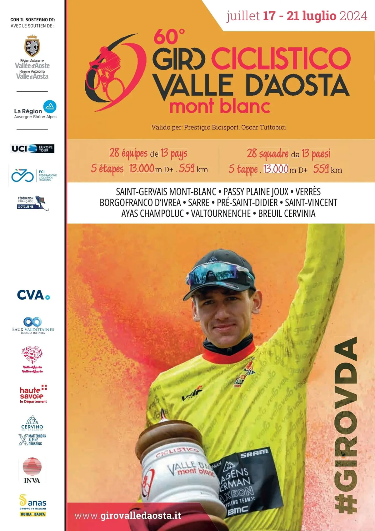 Accueil › Résultats › Résultats - Route Résultats - Route 2024 - 60° Giro Ciclistico Valle d’Aosta Mont Blanc Publié le jeudi 4 juillet 2024 Mis à jour le dimanche 21 juillet 2024 par Frédéric Lafargue Liste des engagés liste de départ 1a Tappa Saint-Gervais Mont-Blanc - Passy Plaine-Joux 2a Tappa Verrès - Borgofranco d’Ivrea 3a Tappa Sarre - Pré-Saint-Didier (Verrand) 4a Tappa Saint-Vincent - Ayas (Champoluc) 5a Tappa Valtournenche - Breuil Cervinia Accueil Retour à la rubrique