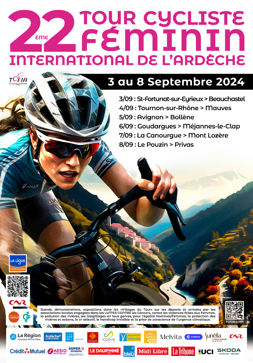 Accueil › Résultats › Résultats - Route Résultats - Route 2024 - 22ème Tour Cycliste Féminin International de l’Ardèche Publié le jeudi 29 août 2024 Mis à jour le lundi 9 septembre 2024 par Frédéric Lafargue Liste des engagées Liste des partantes 1ère étape Saint-Fortunat-Sur-Eyrieux - Beauchastel 2ème étape Tournon-sur-Rhône - Mauves 3ème étape Avignon - Bollène 4ème étape Goudargues - Méjannes-le-Clap (CLM-IND) 5ème etape - la Canourgue - mont Lozère 6ème étape Le Pouzin - Privas Accueil Retour à la rubrique